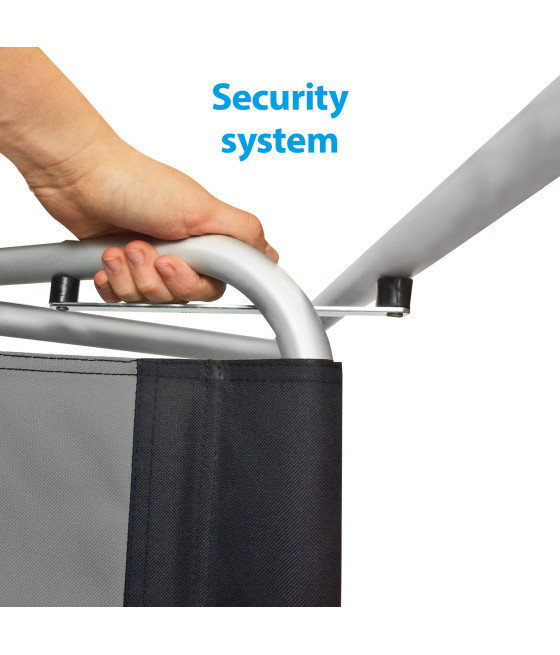 • Telaio in acciaio verniciato a polvere• Telo portante in Syntex Plus• Aperta e pronta all’uso in pochissimi secondi• Facile da trasportare e compatta